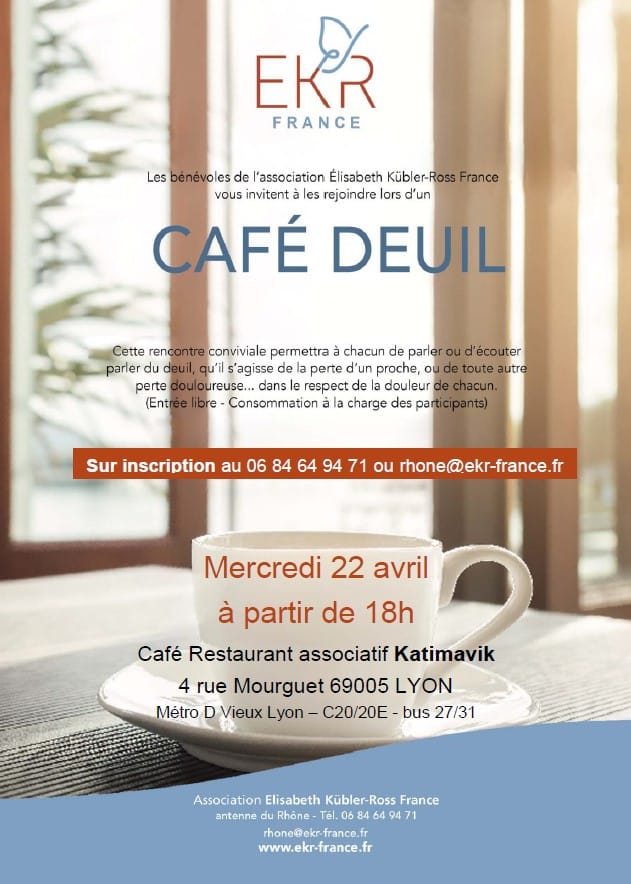 Les bénévoles de l’association Elisabeth Kübler-Ross France, antenne du Rhône, organisent un « café deuil » sur le modèle des cafés-historiques ou cafés-philo.